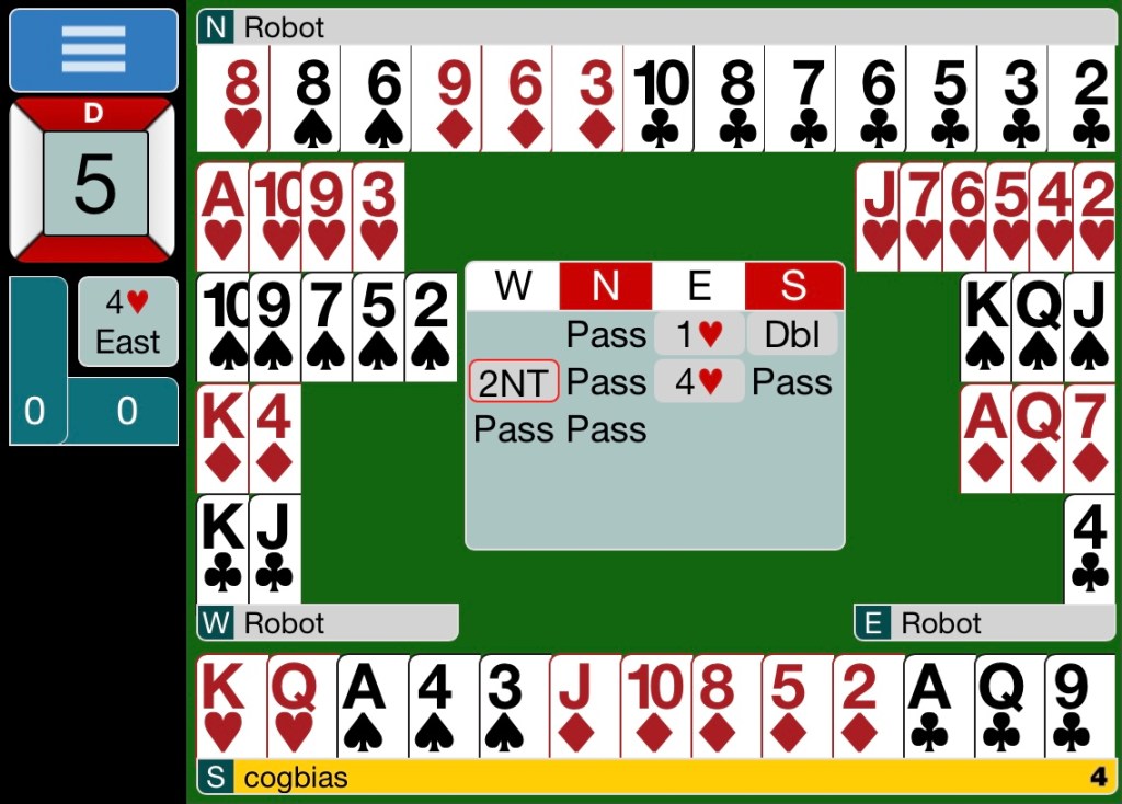 - Partner Bids 1!h and your bid is 2NT so HEARTS is established as TRUMP suit