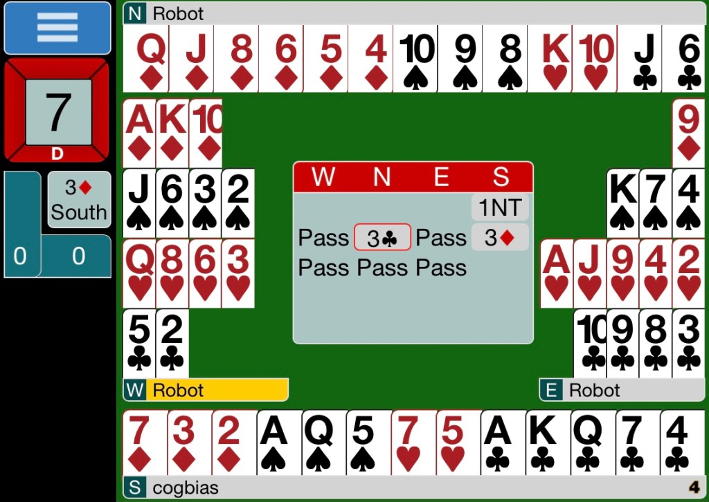 3!c, This announces to the opener TRANSFER to DIAMONDS.